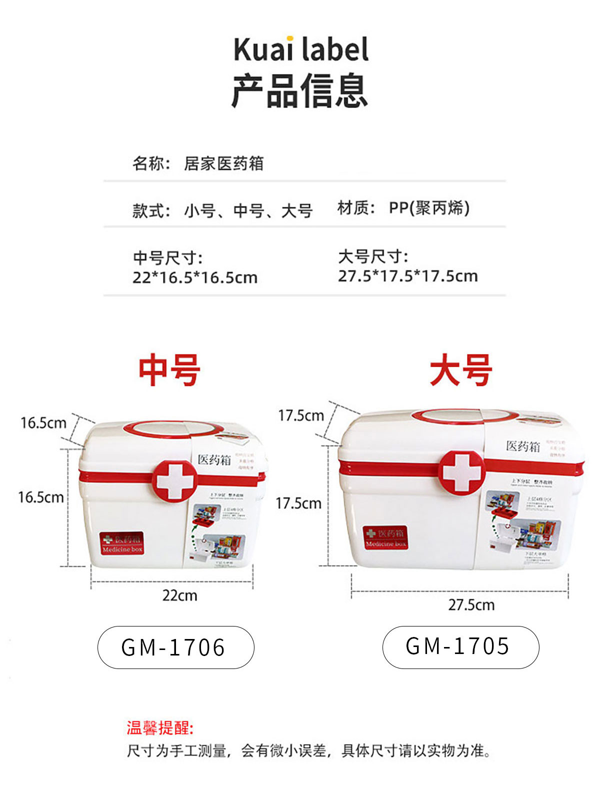 大號/中號醫(yī)藥箱(沒圍卡/貼紙)