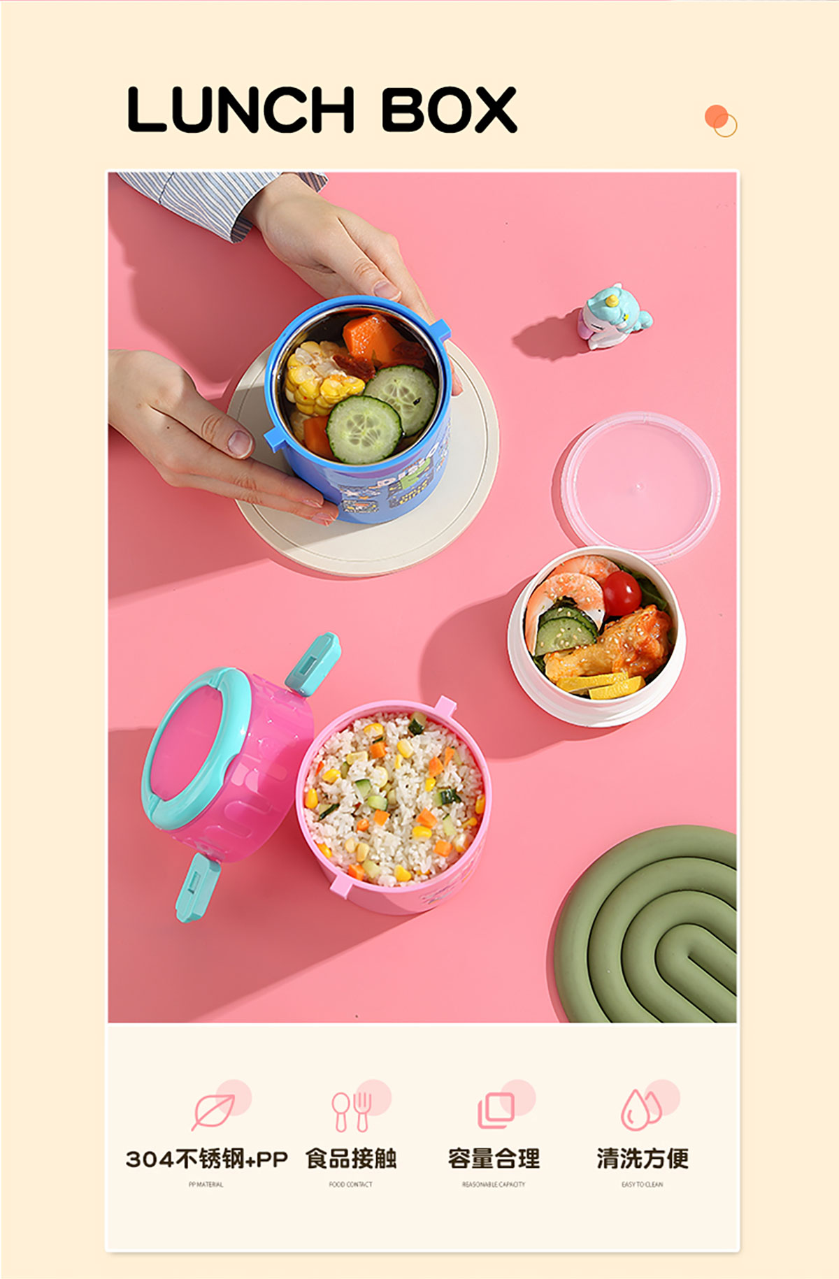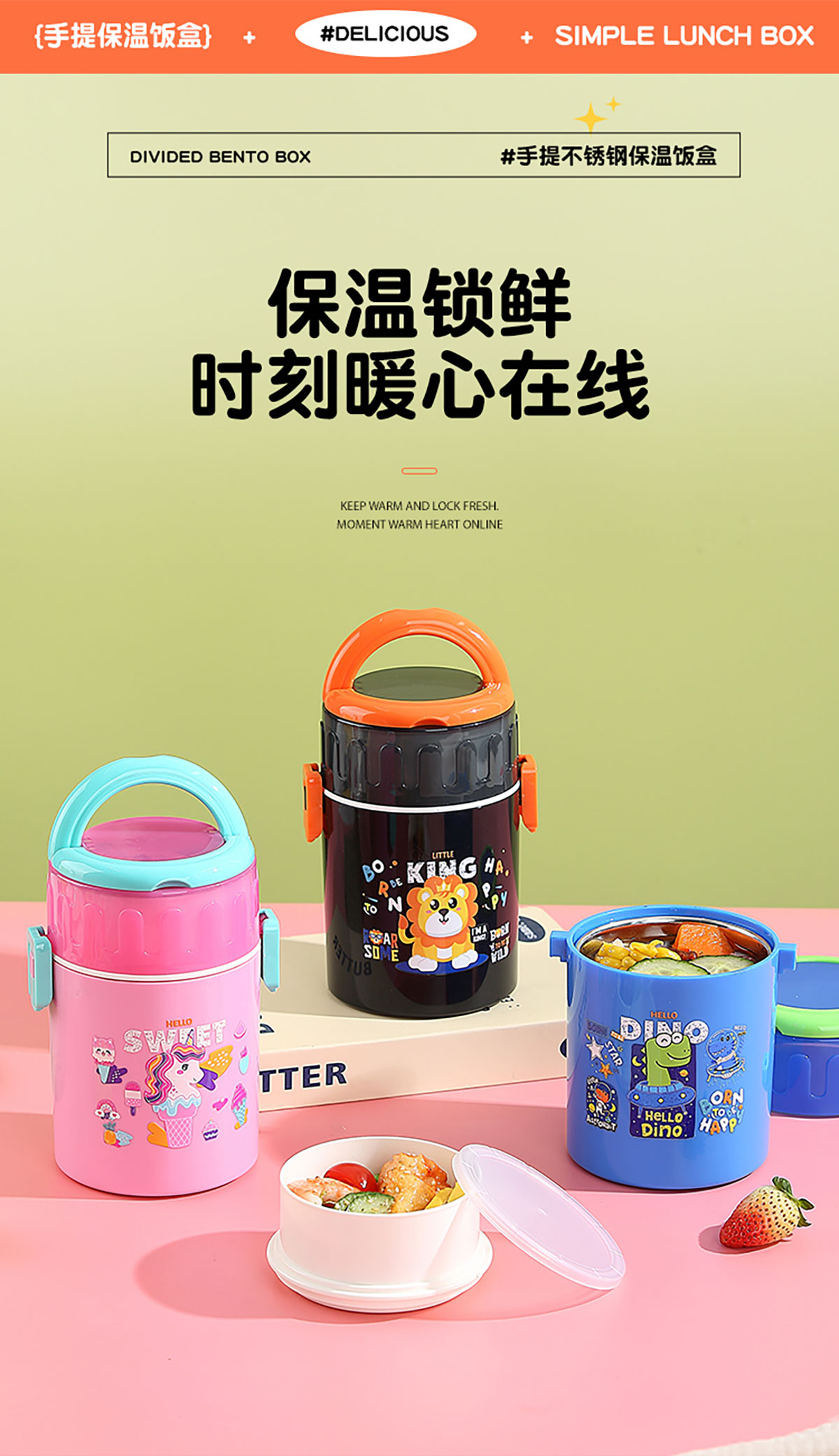 卡通不銹鋼雙層餐盒900ml