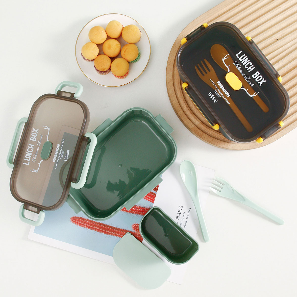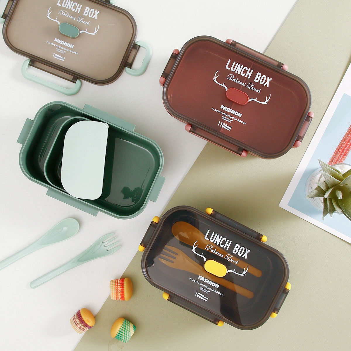 長方雙層/單層密封飯盒+圓形/八角隨行杯