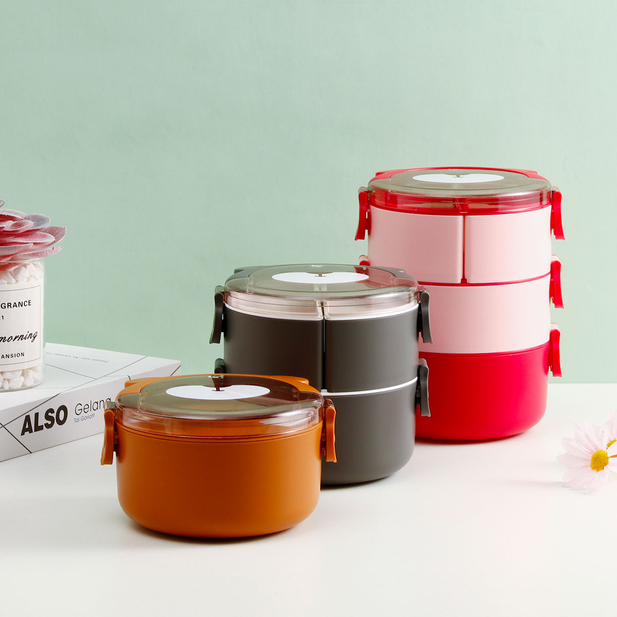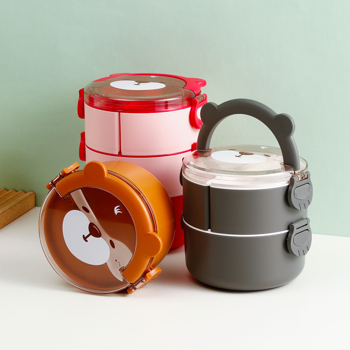 樂(lè)味熊圓形單層/雙層/三層便當(dāng)盒(通格/分格)